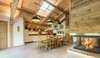 Il se compose d’une grande pièce à vivre avec sa cuisine toute équipée, l’espace repas et d’un grand salon avec cheminée centrale et télévision.